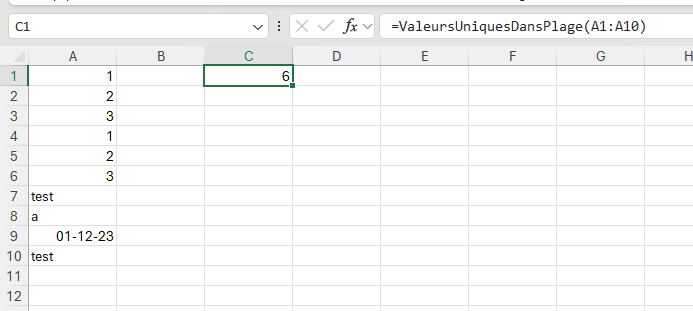 Exemple d’utilisation de la fonction ValeursUniquesDansPlage()