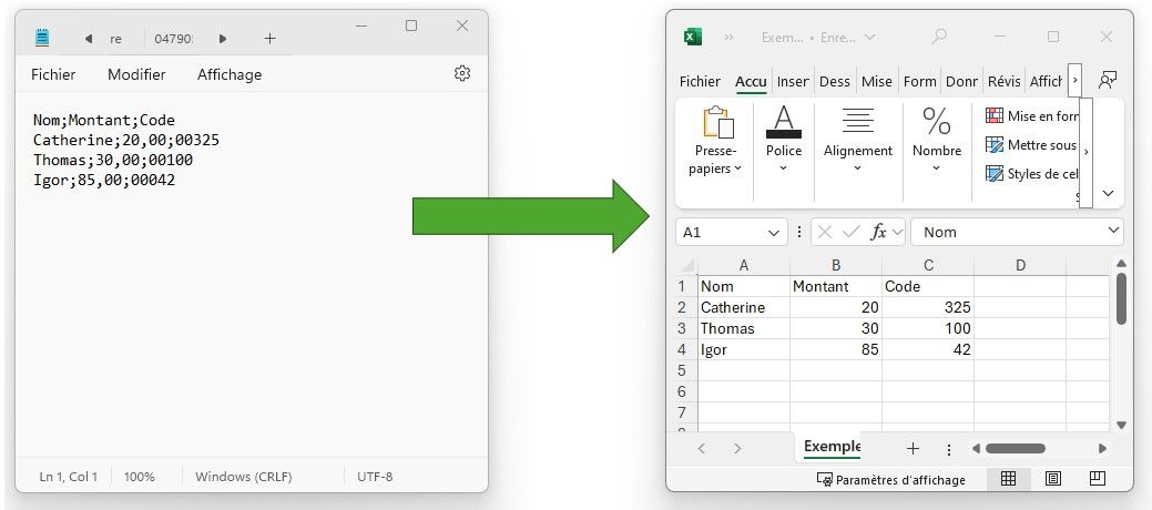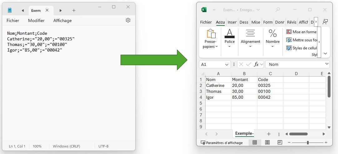 Il est souvent plus facile de comprendre une technique en la visualisant. C'est pourquoi je vous propose des exemples concrets pour mieux saisir comment préserver les zéros en début ou en fin de vos nombres dans un fichier CSV.