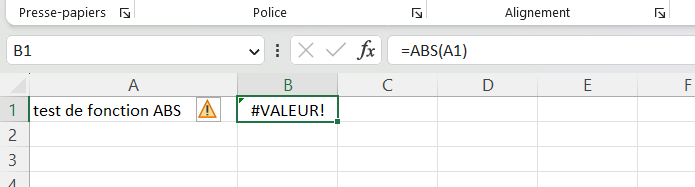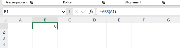 - Si votre argument est vide (par exemple la cellule utilisée dans l'argument nombre est vide), la fonction ABS retournera comme résultat