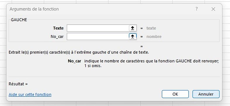 La fonction GAUCHE est l'équivalent de la fonction DROITE, mais elle extrait des caractères à partir du début d'une chaîne de texte. La syntaxe est la suivante: