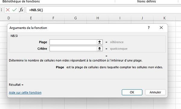 La syntaxe de la fonction NB.SI dans Excel