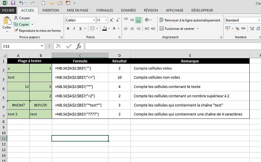 Exemples de formules avec la fonction NB.SI – Les conditions à utiliser