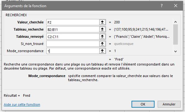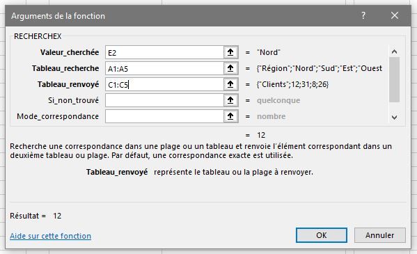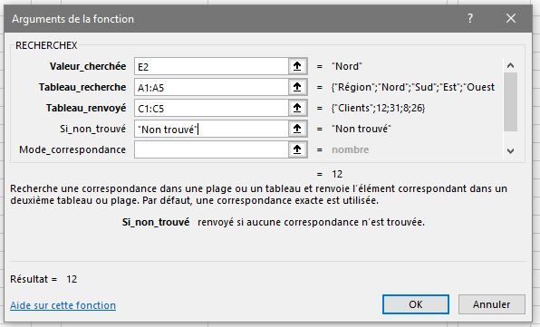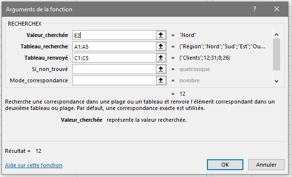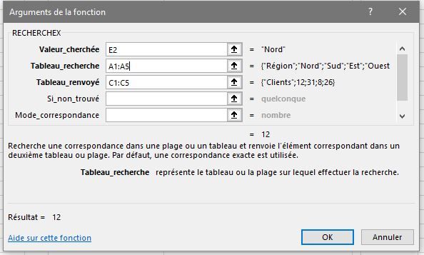 Aperçu rapide des arguments – Comment remplir la fonction RECHERCHEX