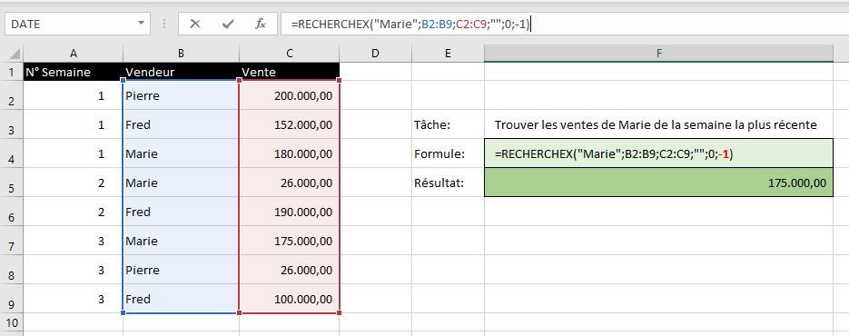 - Exemple comment chercher du dernier au premier élément avec RECHERCHEX