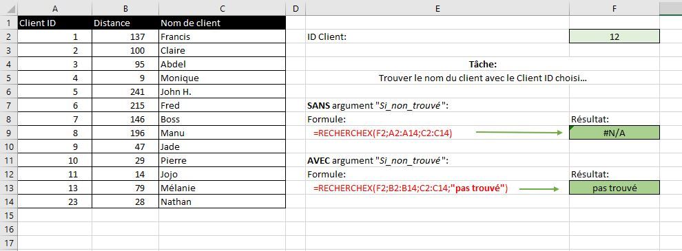 Voici un exemple de la différence si vous utilisez ou pas l'argument Si_non_trouvé