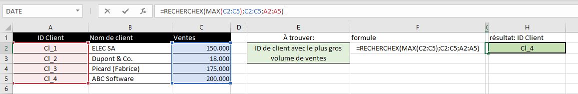 - Si_non_trouvé (facultatif): Le résultat ou cas où la valeur que vos cherchez n'est pas trouvée. (par ex. "aucune vente pour ce vendeur")