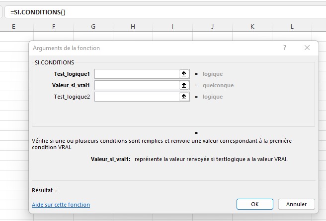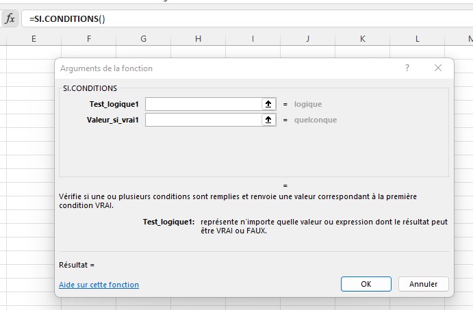 La syntaxe de la fonction SI.CONDITIONS dans Excel