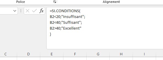 - SI.CONDITIONS est disponible dans Excel 2019, Excel 2021 et Excel 365