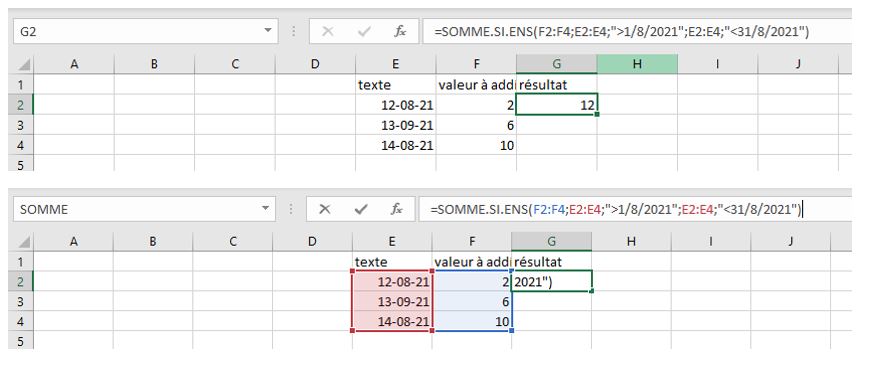 Donc pour reprendre le même exemple, voici la formule qui va faire l'addition si la date est au mois d'août 2021: