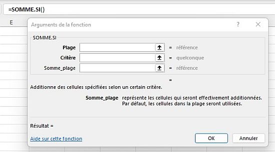 La fonction Excel SOMME.SI a une syntaxe assez simple qui contient trois paramètres dont un est optionnel.