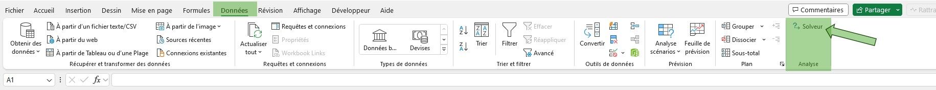 Avec le Solveur activé, il est temps de se familiariser avec son interface. Voici comment procéder pour une première utilisation :